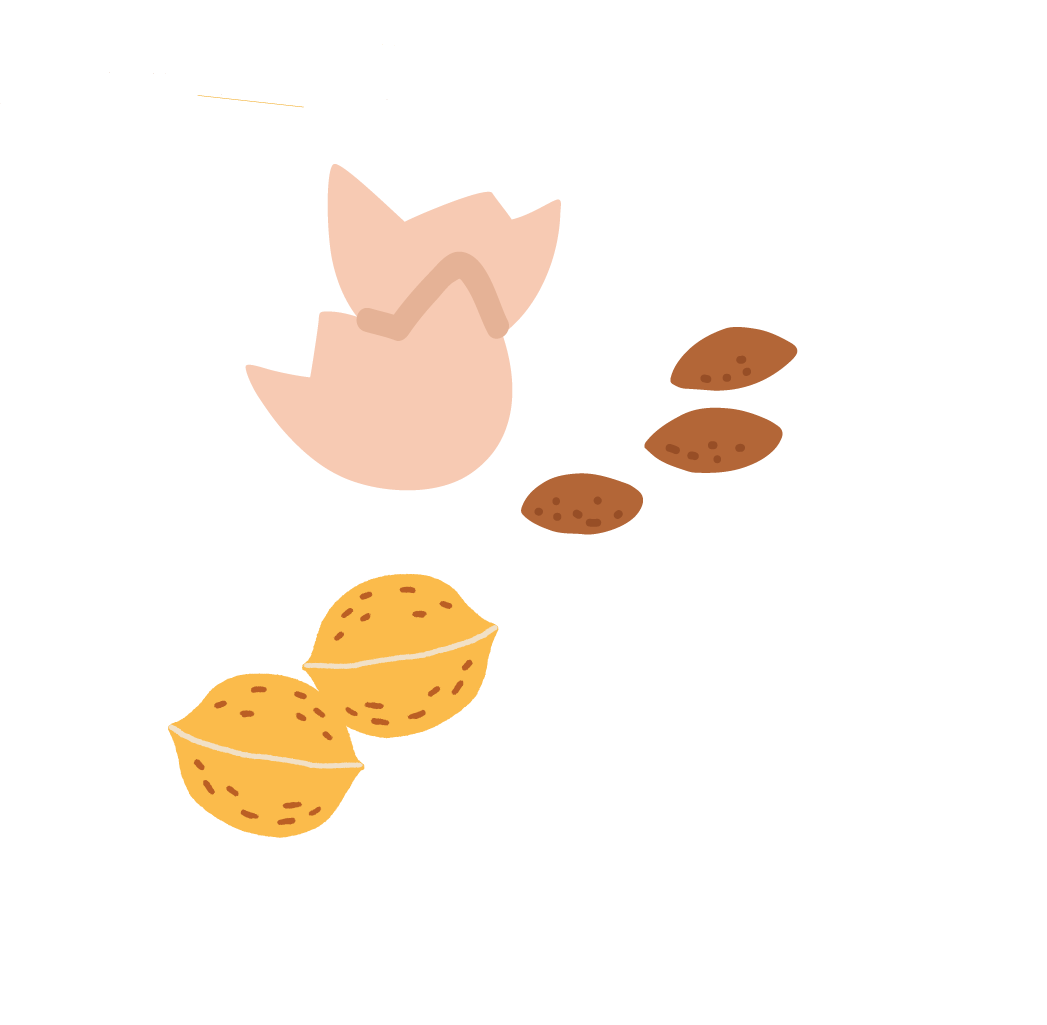 🥚 Coquilles d’oeufs, coques, fruits secs,